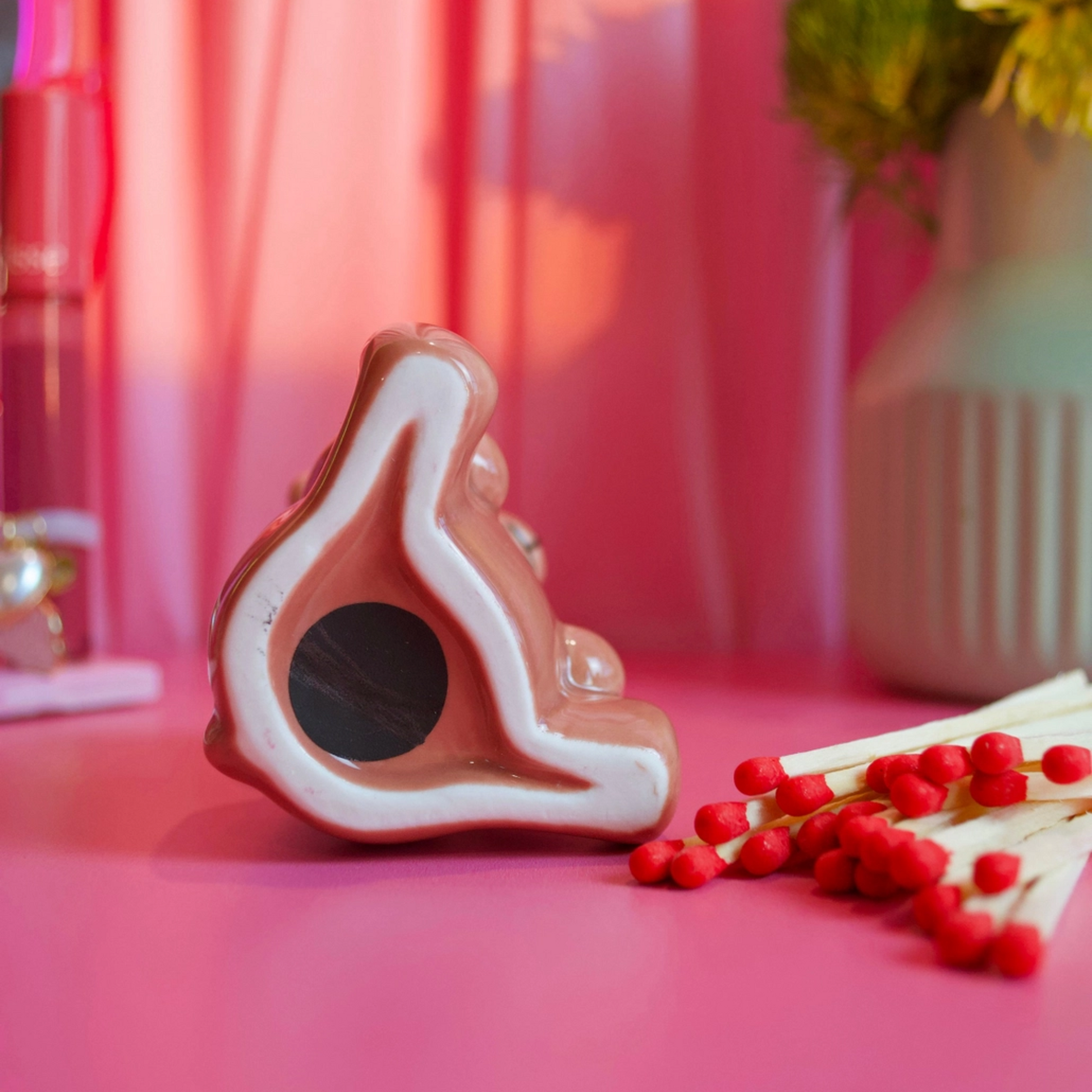This bear-shaped match striker is both cute and useful! Tilt it to light a match, and it also makes a sweet tiny vase for small flowers. Perfect for any spot in your home!